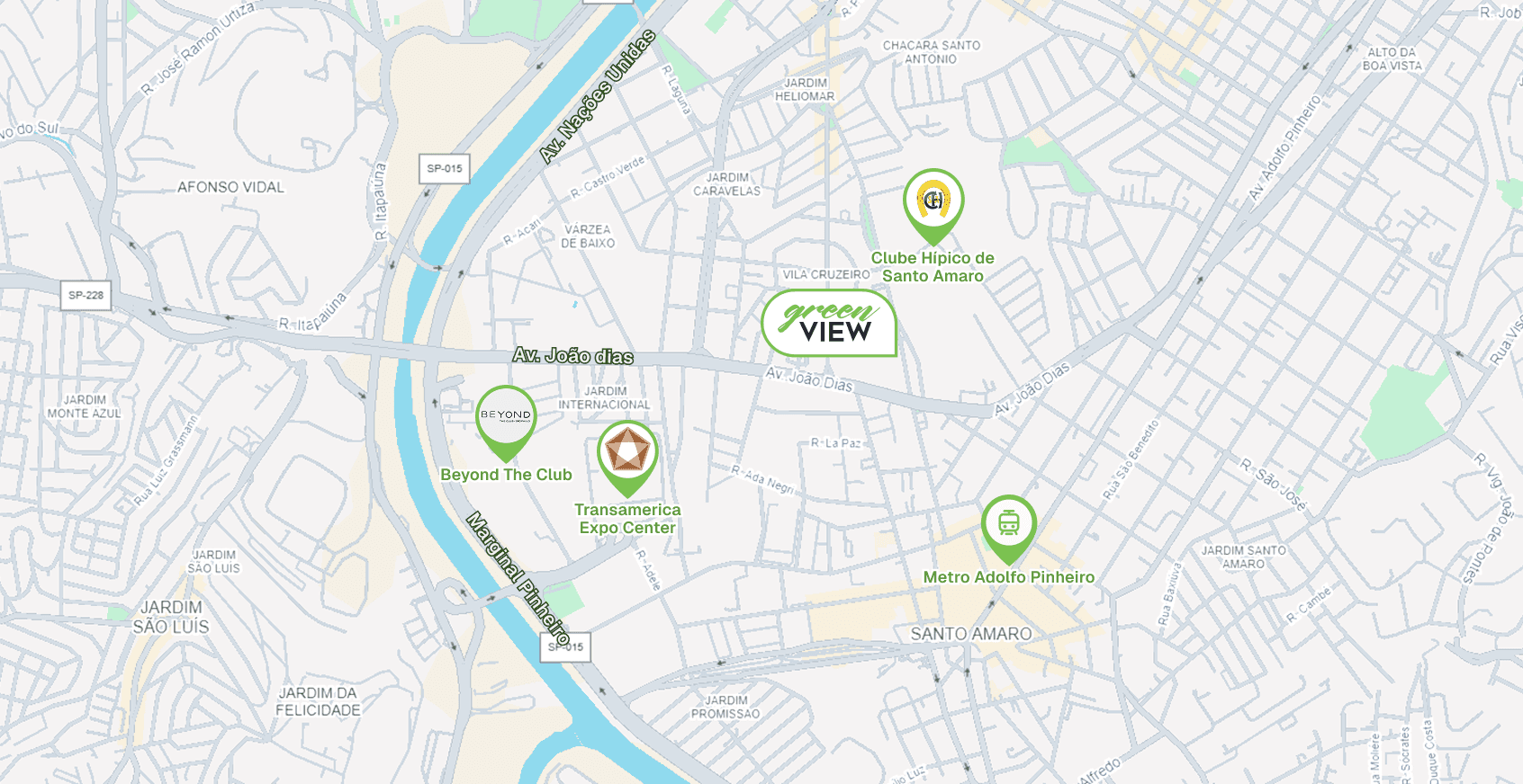 O empreendimento está a menos de 1 km de distância de pontos estratégicos como o Clube Hípico Santo Amaro, Transamerica Expo Center e a Estação de Metrô Adolfo Pinheiro, e a menos de 2 km de distância do moderníssimo Beyond The Club, garantindo praticidade e conectividade.
